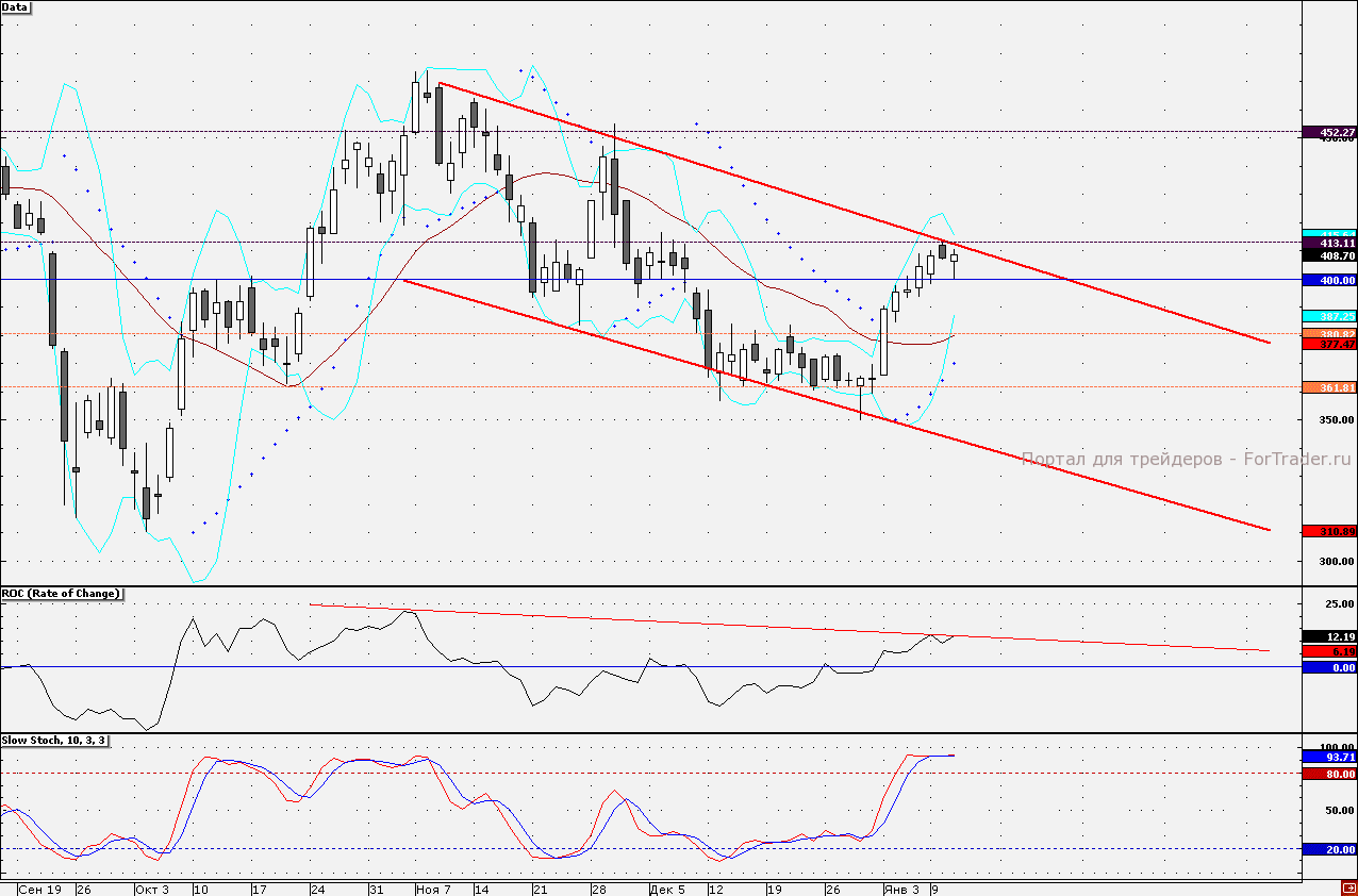 Ближайшие уровни сопротивления: 413,00/420,00/425,00