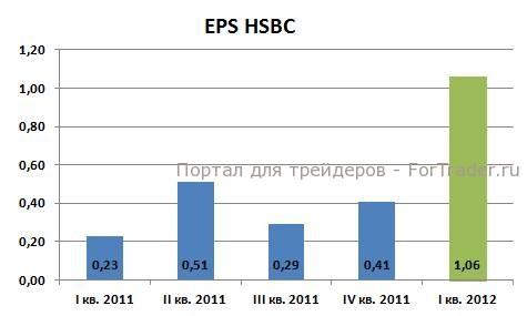 Анализируя отчетный период, мы положительно оцениваем прогресс, достигнутый банком с начала года и считаем акции HSBC привлекательными для инвестирования в среднесрочном периоде. В связи с этим, мы ожидаем рост основных финансовых показателей HSBC. В частности, прибыль на акцию (EPS), по нашим оценкам, вырастет с $0,41 до $1,06 на акцию. Показатель P/EPS HSBC составляет 9,91 против 13,55 по финансовому сектору США и 22,83 по индексу S&P500. Это является свидетельством недооценки акций банка HSBC по сравнению с целым сектором и американским рынком в целом.