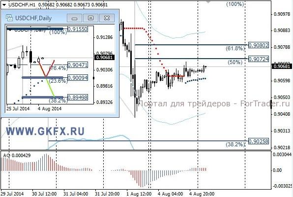 Пара USDCHF в понедельник торговалась в узком диапазоне. Сформированная коррекция говорит о вероятном продолжении снижения. Сегодня ожидаю нового рывка вниз, на котором постараюсь заработать. На эту неделю традиционно рассматриваю два варианта возможного движения цены, основной красный и альтернативный зеленый. Значимые уровни на сегодня отмечены на часовом графике. Индикатор АО находится в положительной зоне и снижается, указывая на коррекцию перед возможным продолжением роста. Индикатор тренда указывает на рост. Преодоление 0,9055 позволит продать с целями 0,9045, 0,9035 и 0,9025.