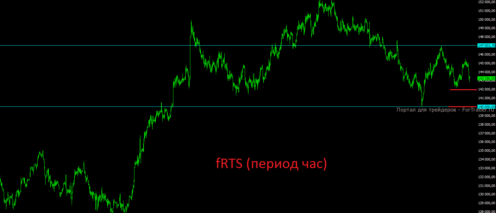 Техническая картина по фьючерсу на индекс РТС так же не вселяет оптимизма, хотя здесь многое ещё будет зависеть и от рубля. Ближайший уровень поддержки находится на отметке 142000 и в случае его пробоя мы увидим дальнейшее снижение вплоть до отметки 140000 пунктов. В случае, если и отметка 140000 пунктов не устоит на закрытии дня, то можно говорить о начале новой волны коррекции. Выход сильно выше отметки 147000 мы в ближайшую неделю не видим, а шансы на выход выше отметки 150000 до конца года оцениваем как 30%.