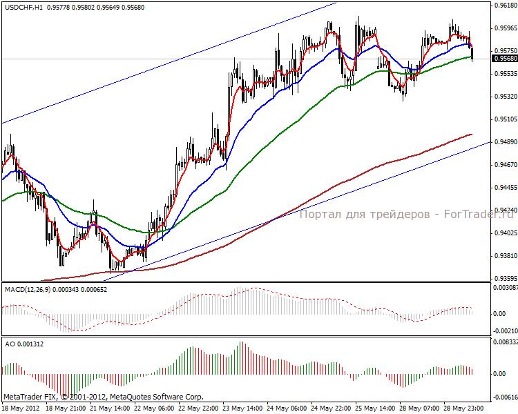 Часовой график вырисовывает движение внутри восходящего канала, в ближайшее время ожидаем подход к его нижней границе к отметке 0.9510 пунктов, после чего возвращение растущей тенденции. Хорошая позиция для внутридневного шорта.
