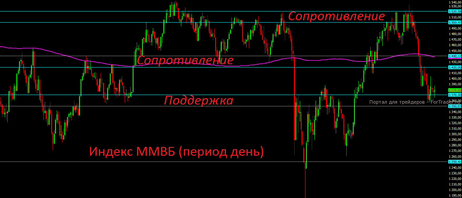 Старт недели на российском фондовом рынке прошёл абсолютно в нейтральном ключе, поэтому понедельник не дал никаких чётких дальнейших ориентиров. Валютный индекс РТС потерял скромные 0.1%, а вот рублёвый индекс ММВБ сумел прибавить 0.3%. С технической точки зрения все ключевые уровни остаются прежние. По индексу ММВБ стоит следить за диапазоном поддержки 1350-1370 пунктов. Пока цена удерживается выше него, стоит удерживать открытые в последние дни длинные позиции, с возможной целью 1420-1440 пунктов, где проходит сильное сопротивление. Пока быкам можно рассчитывать лишь на технический отскок и только в случае, если цене удастся закрепиться выше отметки 1450 пунктов, можно будет говорить о дальнейшем росте и об увеличении доли рисковых активов в портфеле. В случае закрытия дня ниже отметки 1340 пунктов, про оптимистичный сценарий придётся забыть.