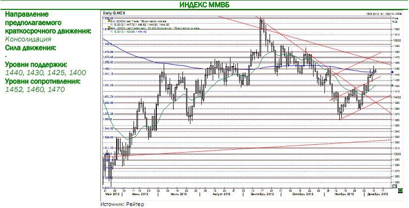Во второй половине торгов поддержку рынкам могла оказать информация The Wall Street Journal о том, что переговоры между Б. Обамой и спикером Палаты представителей США Д. Бэйнером, целью которых является предотвращение «фискального обрыва», продвинулись вперед несмотря на сохранение значительных разногласий по вопросам повышения налогов и сокращения программ медицинского страхования. Детали переговоров между сторонами пока не раскрываются, что, по мнению наблюдателей, может являться обнадеживающим сигналом. По сообщению Financial Times, некоторые республиканцы начинают соглашаться с необходимостью повышения ставки налогов на семьи, получающие больше 250 тыс. долл., а именно главным пунктом разногласий является намерение Б.Обамы отменить налоговую льготу для этой категории граждан. Для достижения консенсуса у сторон около недели. Из других новостей отметим, доклад швейцарского Банка международных расчетов, согласно которому котировки целого ряда активов достигли пятилетних максимумов и утратили связь с реальной экономикой, что грозит глобальной экономике риском повторения финансового кризиса 2008 г. Кроме того, по сообщению Financial Times, США и Великобритания разработали совместный план, по определению порядка и процедуры банкротства 16 крупнейших мировых банков, имеющих глобальное системное значение.