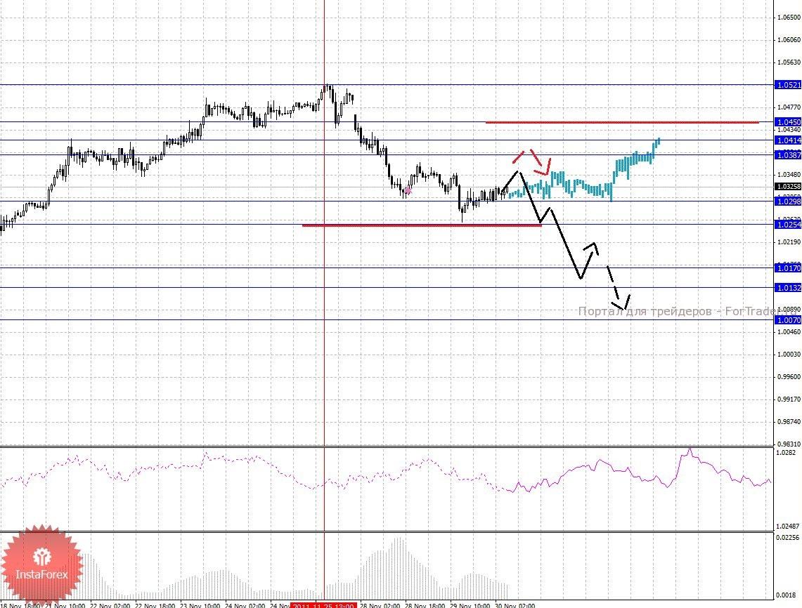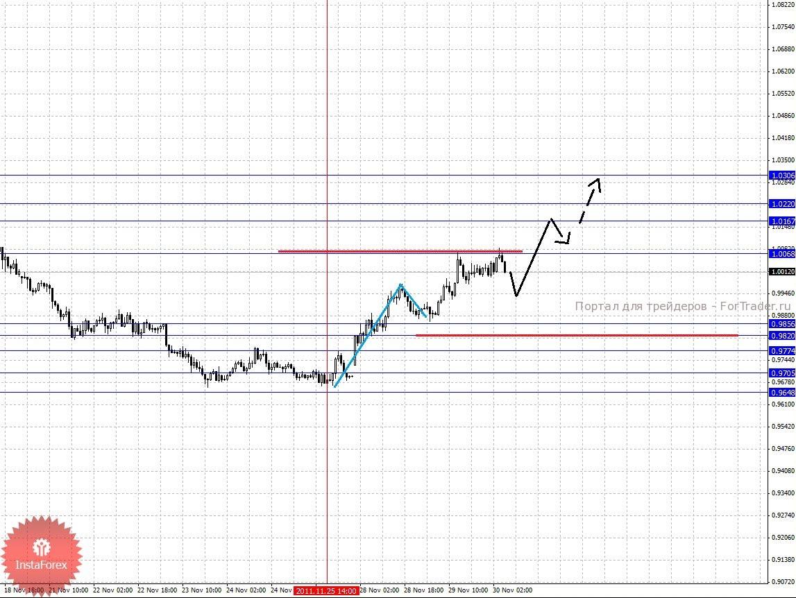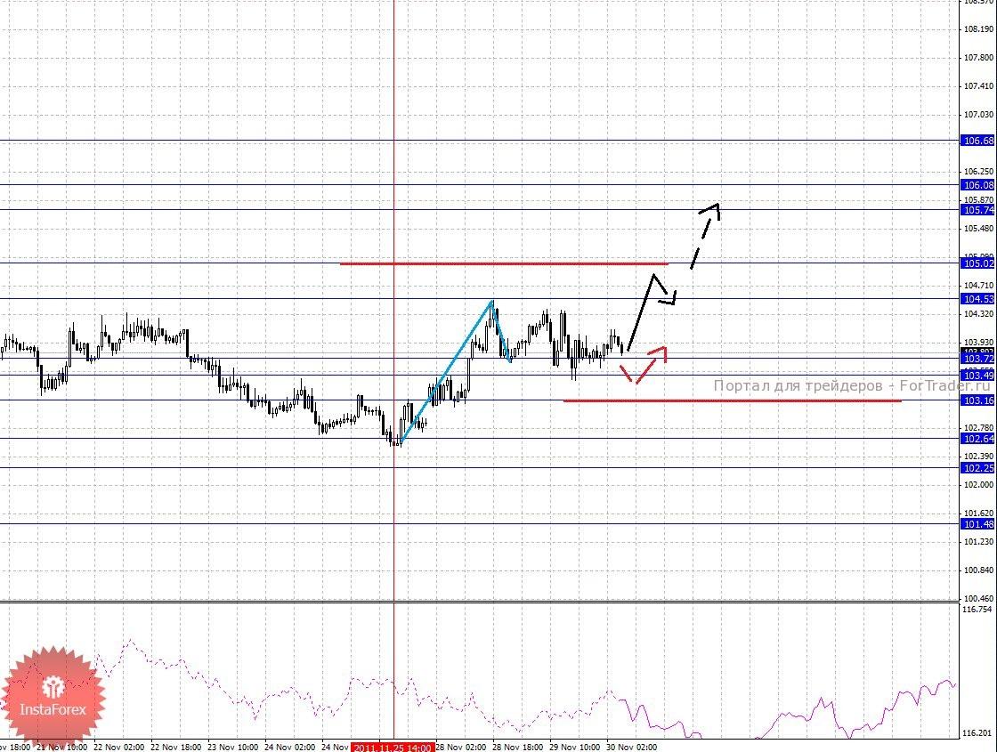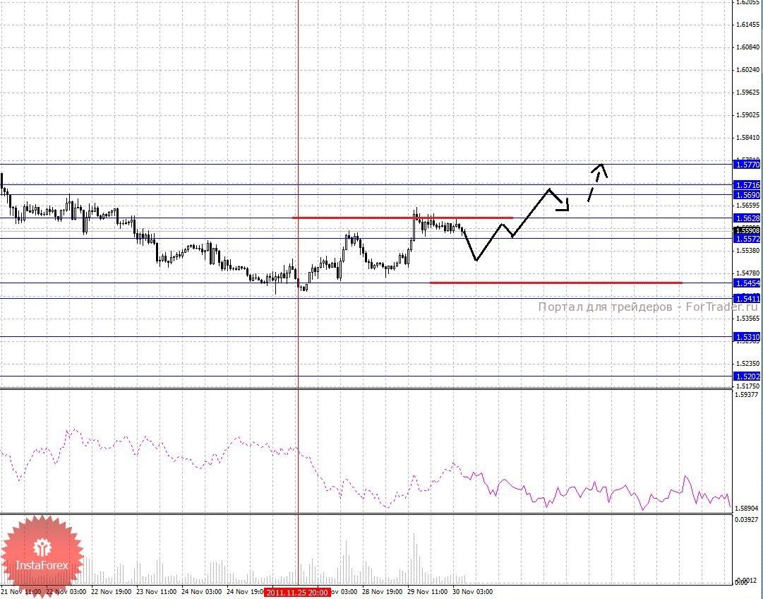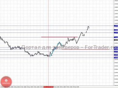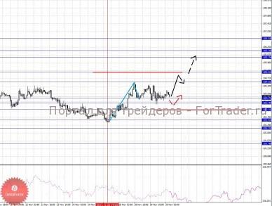По паре Фунт/Доллар ключевыми уровнями являются: 1.5770, 1.5716, 1.5690, 1.5628, 1.5572, 1.5454, 1.5411, 1.5310 и 1.5202. Здесь мы продолжаем следить за формированием восходящей структуры от 25 ноября. В диапазоне 1.5628 – 1.5572 ожидаем консолидированное движение, а также отсюда возможно выполнение откат книзу, однако он должен быть не далее 1.5454. Пробой уровня 1.5628 приведет к продолжению развития восходящей структуры и в данном случае цель 1.5690, в коридоре 1.5690 – 1.5716 консолидация цены. Потенциальным значением для верха считаем уровень 1.5770. Уровень 1.5454 является ключевой поддержкой для начальных условий от 25 ноября, его пробой приведет к отмене данной структуры, в данном случае мы ожидаем небольшую консолидацию в коридоре 1.5454 – 1.5411 и далее импульс к уровню 1.5310. Потенциальным значением для низа, по-прежнему, считаем уровень 1.5202.