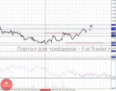 По паре Евро/Доллар важными уровнями являются: 1.3547, 1.3513, 1.3450, 1.3417, 1.3276, 1.3247, 1.3210 и 1.3127. Здесь мы пересмотрели цели для восходящей структуры от 25 ноября в связи с формированием стадии трайдент. Продолжения движения к верху ожидаем после прохода ценой шумового диапазона 1.3417 – 1.3450, в данном случае цель 1.3513. Потенциальным значением для верха пока считаем уровень 1.3547, по достижении которого, ожидаем консолидацию. Коридор 1.3276 – 1.3247 является ключевой поддержкой для верха, его пробой приведет к отмене восходящей структуры, в данном случае первая цель 1.3210. Потенциальным значением для низа считаем уровень 1.3127.