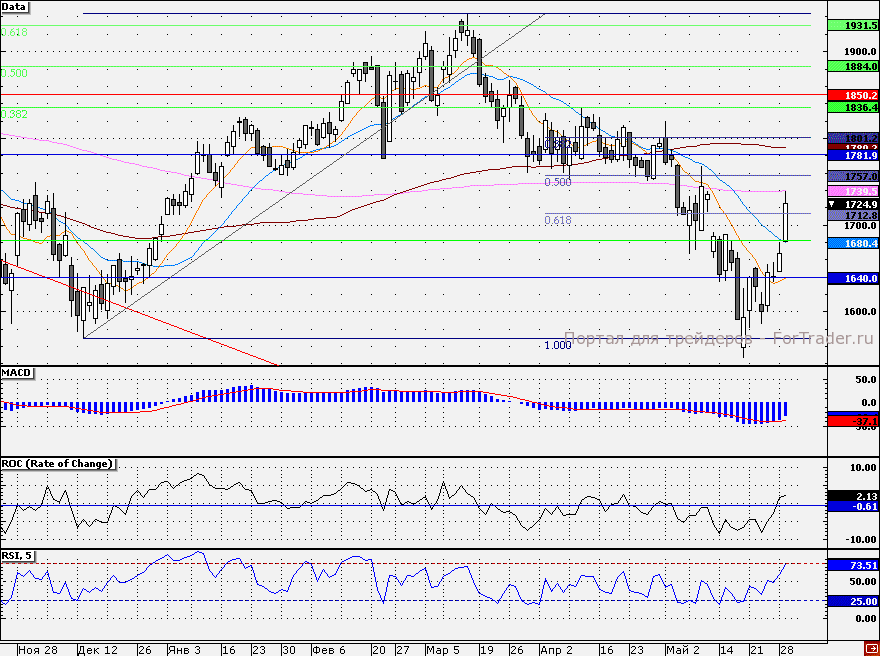 Ближайшие уровни сопротивления: 1739,50/1760,00/1800,00