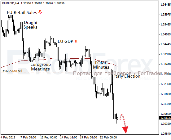Вся эта неопределённость с будущим правительством Италии уже отразилась и на EUR/USD, который балансирует сейчас чуть выше 1,30, но скорее всего, этот уровень будет пробит уже в течение дня. Не исключено, что мы увидим дальнейшее снижение пары, тем более, что накануне греческий центробанк разразился крайне пессимистичным прогнозом. Более того, ставки по итальянским бондам уже немного подросли, и если такая тенденция продолжится, медведи с ещё большей силой будут двигать евро к новым минимумам. Поэтому пока остаюсь в продажах.