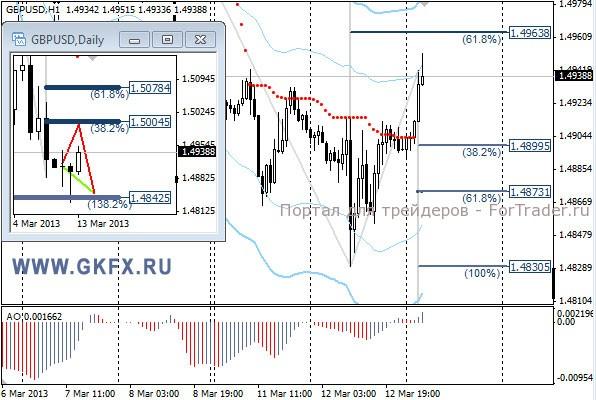 Пара GBPUSD как и предполагалось, встретила поддержку на уровне 1,4860 и не смогла пройти ее. В итоге цена поднялась сегодня утром к максимуму этой недели. Рост может продолжиться до 1,4965, а затем уйдет в коррекцию от получившегося роста. На этой неделе по традиции рассматриваю два варианта возможного движения цены, основной красный и альтернативный зеленый, придерживаюсь красного. Значимые уровни на сегодня отмечены на часовом графике. Индикатор АО в положительной зоне и растет, указывая на желание пары двигаться вверх. Индикатор тренда указывает на рост. Sell 1.4965 или выше со стопом 1,4985. Цель 1,4915.