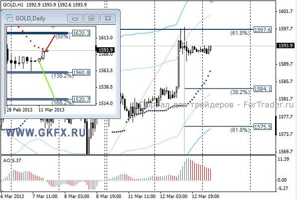 Цены на золото вышли из диапазона вверх в соответствии с моими вчерашними предположениями. Думаю, на вчерашнем росте дело не закончится, поэтому попробуем помаленьку забирать от роста. Помаленьку потому что основной тренд вниз на дневном графике. На дневном графике традиционно делаю два варианта движения цены на неделю, основной красный и альтернативный зеленый, склоняюсь к красному. Значимые уровни на сегодня отмечены на часовом графике. Индикатор АО в положительной зоне и снижается, указывая на коррекцию перед возможным дальнейшим ростом. Индикатор тренда указывает на рост. Buy по 1586.0 или ниже со стопом 1580,0. Цель 1597,0.