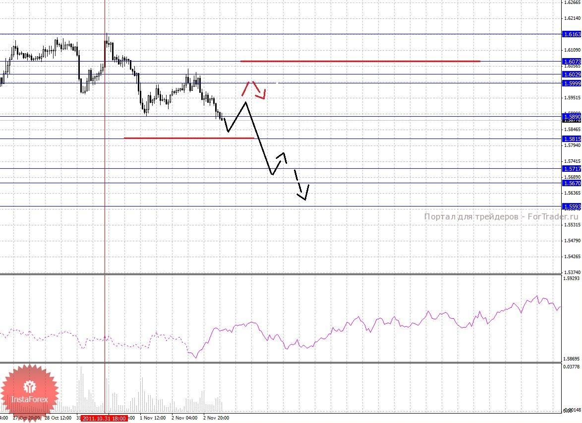 По паре Фунт/Доллар ключевыми уровнями являются: 1.6163, 1.6073, 1.6029, 1.5999, 1.5890, 1.5815, 1.5717, 1.5670 и 1.5593. Здесь мы следим за формированием нисходящей структуры от 31 октября. Краткосрочное нисходящее движение, ожидаем в диапазоне 1.5890 – 1.5815, пробой последнего значения должен сопровождаться импульсивным движением к уровню 1.5717, по достижении которого, ожидаем консолидацию в коридоре 1.5717 – 1.5670. Потенциальным значением для низа, считаем уровень 1.5593, движение к которому, ожидаем после пробоя 1.5670. Корректировочное восходящее движение, возможно в коридоре 1.5999 – 1.6029, пробой последнего значения приведет к углубленной коррекции, здесь цель 1.6073, этот уровень является ключевой поддержкой для низа, его пробой, в свою очередь, приведет к развитию восходящей структуры, в данном случае потенциальная цель – 1.6163.