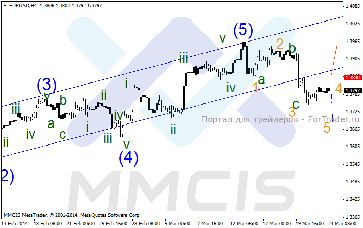 В качестве основного сценария рассматривается снижение в волне «5» к отметке 1.3700. В качестве альтернативного сценария рассматривается пробой уровня сопротивления 1.3840, что может привести к росту единой валюты в район отметки 1.3940.