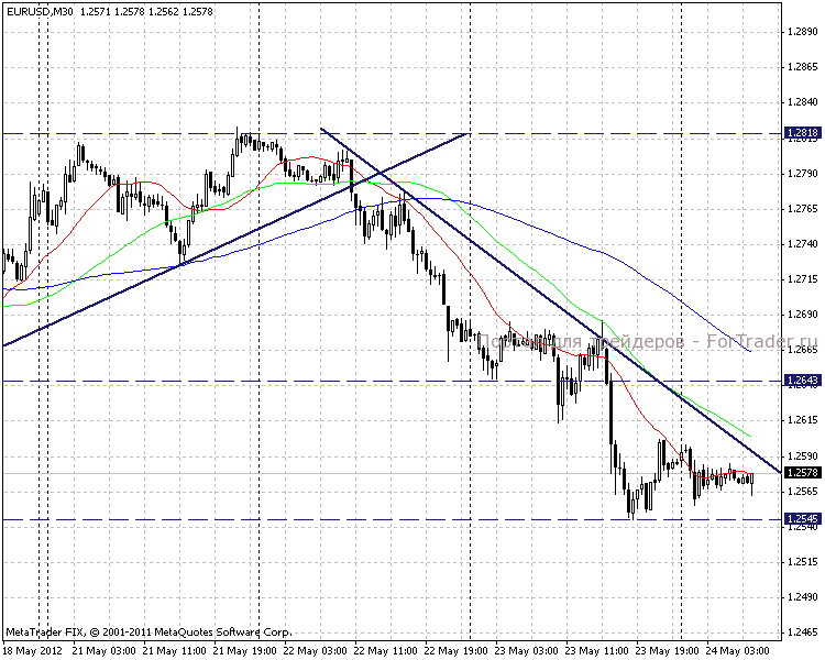 На внутридневных графиках виден отбой цены актива от сформировавшейся нисходящей линии тренда, на сегодняшний день в районе 1,2590 может случится аналогичное событие. Но остается большая вероятность тестирования графиком предыдущего сильного уровня поддержки 1,2626.