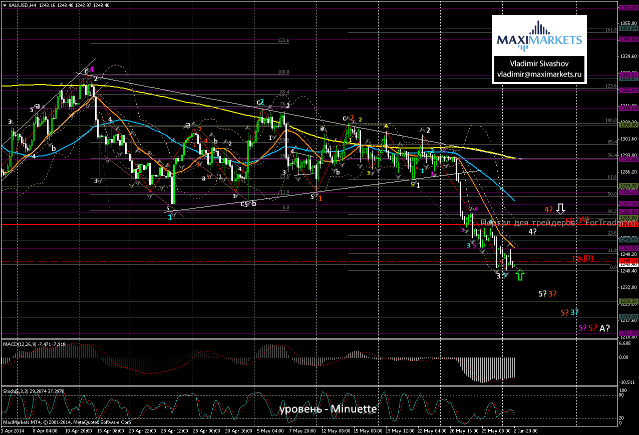 Драгоценные металлы вновь снижаются на позитивной динамике глобальных фондовых рынков, где основные индексы США и ряда развитых стран обновили исторические максимумы. За торговый день в пятницу 30 мая стоимость золота продолжила снижение, опустившись (с 3.02.2014) до минимального уровня 1242.19$ за унцию (-18.18$). По серебру цены также зафиксировали новый 5-месячный минимум – 18.62$ за унцию. В этой ценовой зоне активность продавцов несколько снизилась, поскольку накануне выходных игроки начали фиксировать прибыль и закрывать сделки на продажу металлов.