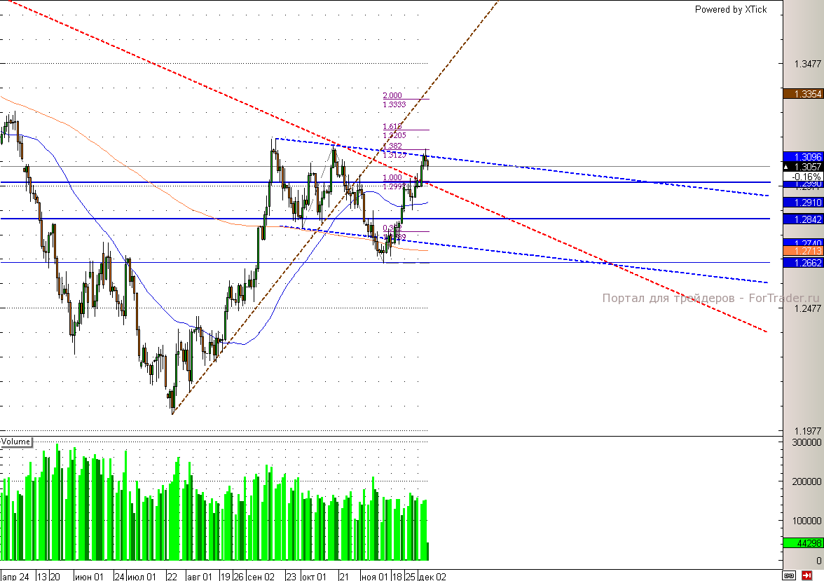 Европейская валюта так и не смогла закрепиться выше отметки 1,31. На сегодняшних торгах евро теряет к доллару 0,2%. Ожидание негативных данных по экономике региона за третий квартал и снижение рейтинга Греции толкают участников на продажи единой валюты. Технически, после неудачной попытки преодолеть 1,31, пара может вновь опуститься к 1,3, где сейчас проходит нисходящая трендовая линия.