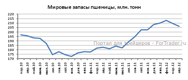 Сложившиеся в пользу роста цен итоги апрельского отчета министерства сельского хозяйство США все же оказались не в состоянии переломить негативную динамику. Тем не менее, стоит отметить, что в своем отчете ведомство повысило прогноз по мировому спросу на пшеницу. Согласно прогнозу ближайшие 12 месяцев мировой спрос составит 686,76 млн. тонн, что на 0,41% больше предыдущей оценки, а объем переходящих мировых запасов пшеницы за этот же период достигнет 206,27 млн. тонн, что на 1,58% ниже предыдущего прогноза.