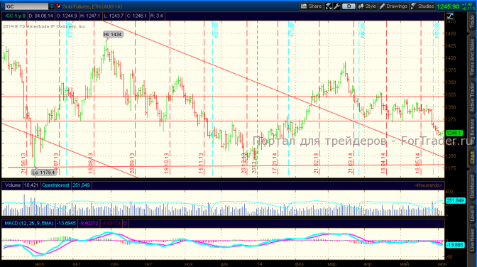 Ближайшими уровнями поддержки в золоте являются 1240-1200$, уровни сопротивления – 1260-1290$.