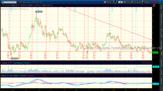 Ближайшие уровни поддержки в серебре – 18,6-18,2$, уровни сопротивления – 18,9-19,4$.