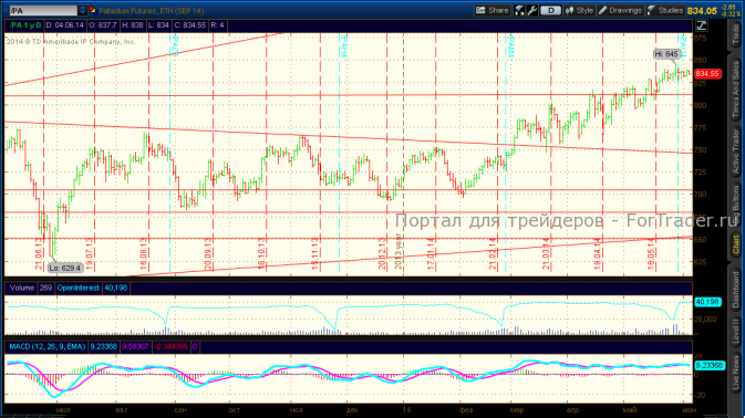 Рынок палладия остается стабильным на уровне 833$, несмотря на снижение на рынке платины. Сезонные факторы с июня начинают оказывать негативное влияние на рынок палладия.