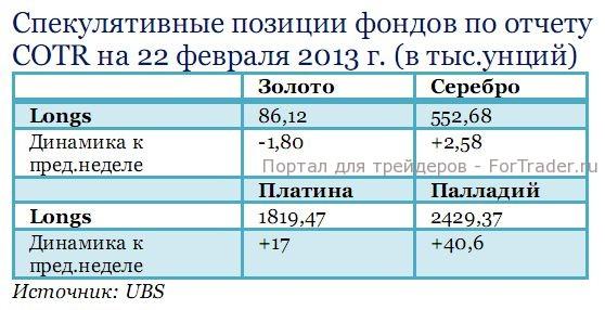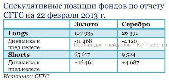 По отчету  COTR  длинные позиции в золоте и серебре  продолжали снижаться.  Золото  показало максимальный прирост коротких позиций за последние 15 лет  и минимальное количество открытых длинных позиций с мая 2012 г. Серебро показало максимальный прирост коротких позиций с августа 2005 г.