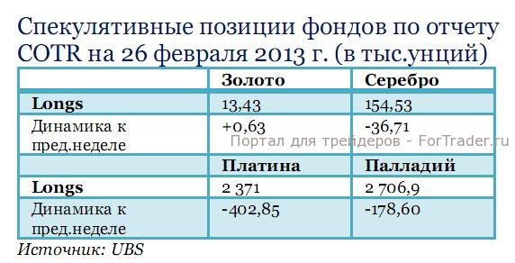 По отчету COTR длинные позиции в золоте немного подросли, а в остальных металлах продолжали снижаться. Особенно сильное падение после продолжительного роста показали позиции в платине.