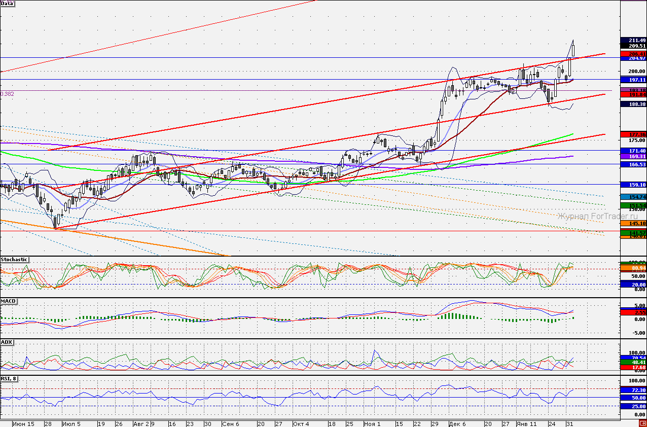 Ближайшие уровни поддержки: 205,00/202,25/200,00/198,80