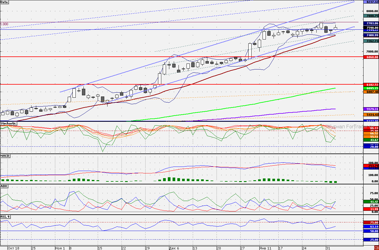 Ближайшие уровни поддержки: 7500,00/7400,00/7393,63
