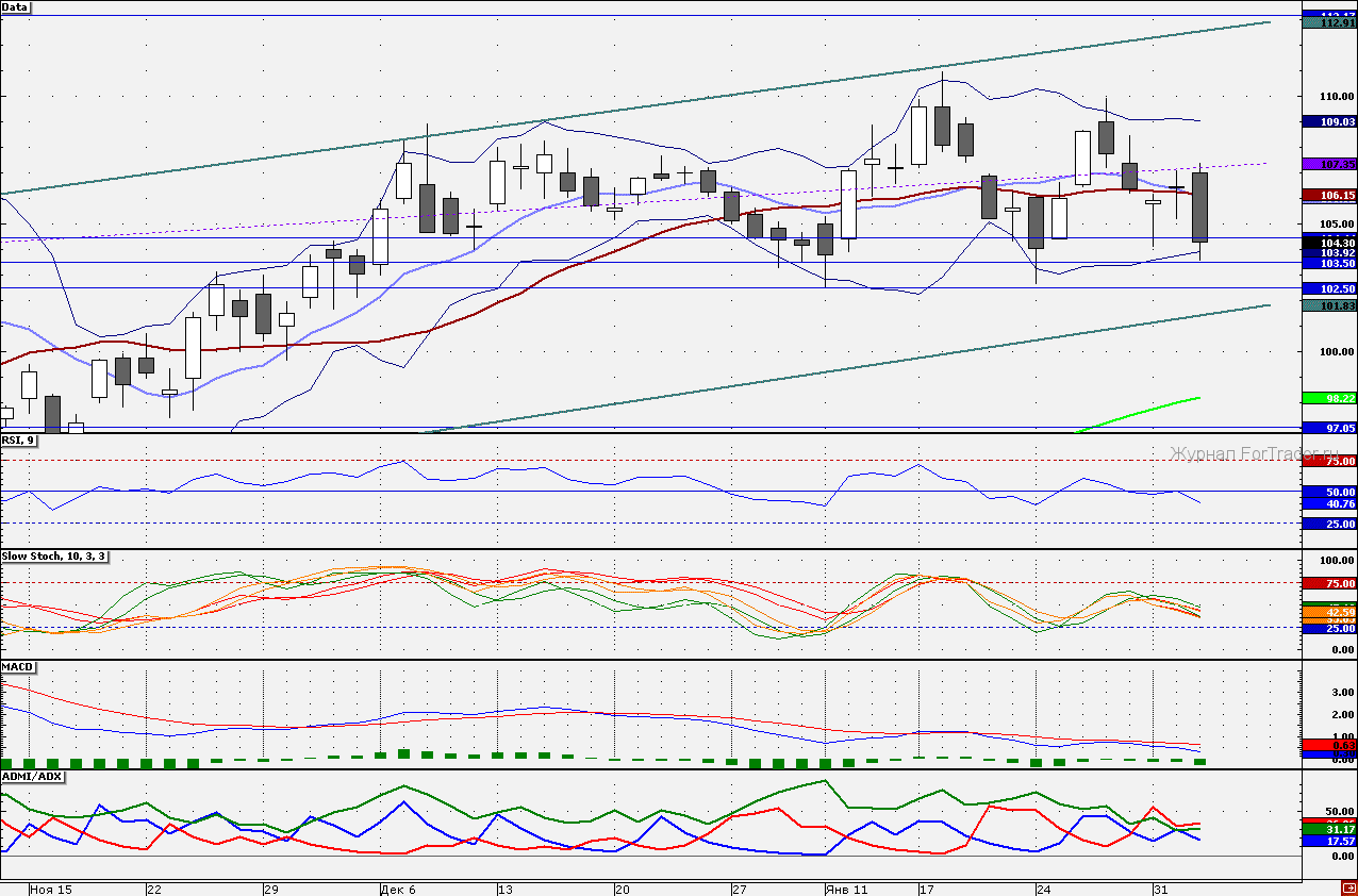 Накануне акции выглядели существенно хуже рынка. Сегодня внешний фон смешанный, однако перепроданность накануне может поддержать акции сегодня, удержав их от более существенной фиксации прибыли в случае ухудшения динамики фьючерсов на индексы США. негативным фактором является закрытие ниже 105,00 руб., данный уровень выступит ближайшим сопротивлением, в случае пробития которой целью станет район 10- и 21-дневных скользящих средних (106,00 и 106,15 руб.). Локальной поддержкой вновь станет 103,5 руб.