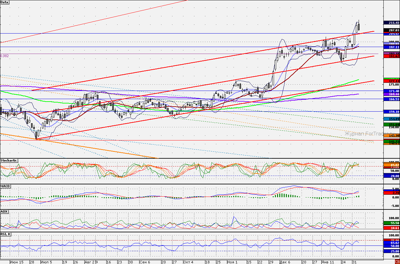 Ближайшие уровни сопротивления: 210,00/212,90/215,00
