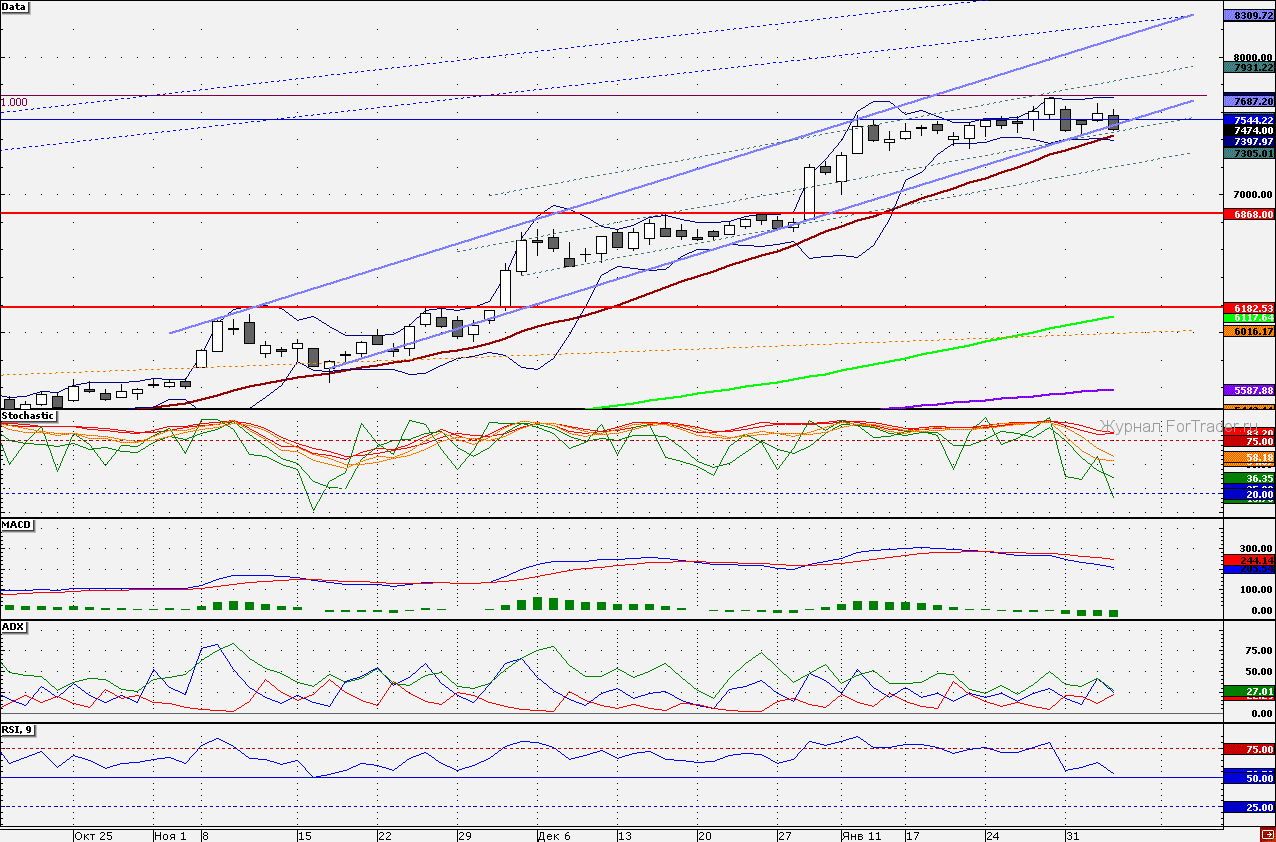 Ближайшие уровни сопротивления: 7500,00/7545,00/7600,00