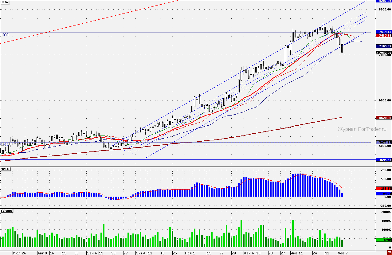 Ближайшие уровни сопротивления: 7100,00/7200,00/7230,00