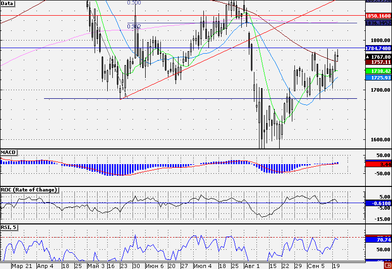Ближайшие уровни сопротивления: 1782,40/1800,00/1815,00/1835,00