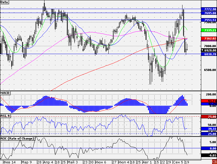 Ближайшие уровни сопротивления: 7000,00/7100,00/7150,00/7200,00