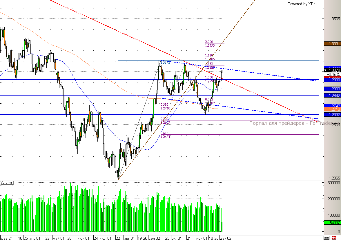 Евро почти не изменяется к доллару и торгуется вблизи цен вчерашнего закрытия. Текущим серьезным сопротивлением для данной валюты выступает отметка 1,31, пробив которую евро пойдет к 1,32, а затем и к 1,333. Выкуп Грецией облигаций на сумму 10 млрд и, возможно, скорая рекапитализация испанских банков продолжают поддерживать европейскую валюту. Сегодня состоится саммит Евросоюза в Брюсселе, на котором будет решаться вопрос создания единого банковского регулятора в Европе. Позитивные заявления с него могут также положительно повлиять на стоимость евро.