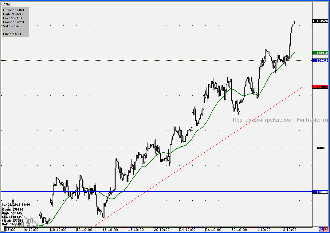 Торговые роботы в настоящий момент занимают длинные позиции, и мы ожидаем глобального восходящего движения. Так, например, краткосрочная стратегия открыла лонг еще по цене 160 500, и в настоящий момент еще весьма далека от того, чтобы зафиксировать прибыль.