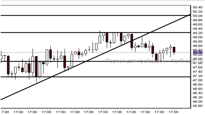 Торговая рекомендация: При снижении к уровню 47, 90$ возможен отскок вверх с целью 49,20$. При пробое вверх уровня 49,20$, вероятен дальнейший ход на 50$.