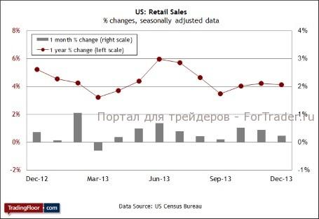 Дополнительным поводом для беспокойства стала новость о том, что экономическое доверие продолжило снижаться в 2014 году. Индекс экономического доверия Gallup за неделю, окончившуюся 9 февраля, опустился до самого низкого в этом году уровня. Некоторые аналитики считают, что экономическую активность временно подавляют суровые погодные условия и что в ближайшем будущем ситуация улучшится. «В плане экономического роста это будет лучший год с 2005 года» — заявил экономист Лоренс Чимерин (Lawrence Chimerine) на деловой конференции ранее на этой неделе. Возможно, только в сегодняшнем отчете о розничных продажах мы вряд ли найдем тому подтверждения.