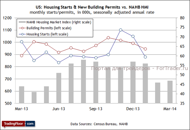 Вчера был опубликован отчет о настроениях в жилищно-строительной отрасли, который показал, что с учетом недавнего замедления экономики для восстановления доверия потребуется время. Да, индекс жилищного рынка Национальной ассоциации застройщиков жилья (NAHB) и Wells Fargo в марте повысился. Но после февральского падения, которое стало самым сильным за всю историю отчета, индексу еще предстоит доказать свой потенциал. «Застройщики продолжают испытывать влияние неблагоприятной погоды и трудностей с поиском участков и рабочей силы» — сказал председатель NAHB Кевин Келли (Kevin Kelly).