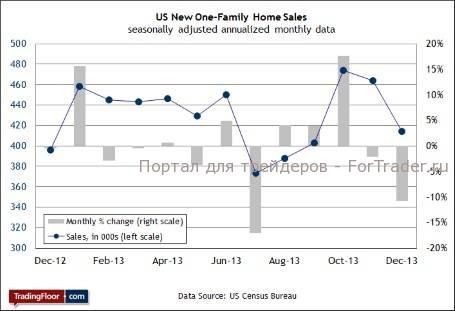 Публикуемый сегодня отчет о покупках новых домов за январь должен продемонстрировать то, что уже было ясно из предыдущих отчетов: пока что 2014 год складывается для сектора недвижимости не очень хорошо. Средний прогноз предусматривает сокращение продаж нового жилья в прошлом месяце до годового показателя 400 000 (скорректированного с учетом сезонных факторов) по сравнению с 414 000 в декабре. Результат не плачевный, но он пополнит копилку неутешительных отчетов на рынке жилья, которые вышли за последние несколько недель.