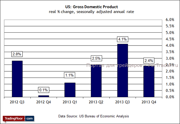 На это указывает моя эконометрическая модель, да и другие экономисты ждут аналогичных результатов за 1 квартал. Считается, что во всем виноваты плохие погодные условия. Но сегодняшний отчет по ВВП за 4 квартал поможет нам понять, насколько могут измениться эти прогнозы. В частности, следите за существенными отклонениями от предыдущих оценок. Например, в отчете, опубликованном в прошлом месяце, темпы потребительских расходов увеличились, что привело к повышению годового процента роста до 2.6% — это максимум почти за два года. Очень важно, чтобы в сегодняшнем отчете сохранилась такая позитивная динамика, потому что весеннее пробуждение экономики все еще остается лишь надеждой, не подкрепленной фактами.
