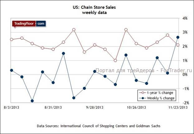 Публикуемые в последнее время отчеты в США рисуют обнадеживающую картину для крупнейшей в мире экономики. Благоприятные данные включают октябрьский отчет о розничных продажах, в котором был зафиксирован подъем. Согласно ожиданиям, в ноябре такая тенденция сохранится. Об этом свидетельствует умеренный прирост индекса потребительских расходов Gallup за прошлый месяц. Еженедельный отчет о продажах, который выходит сегодня, поможет по-новому оценить перспективы роста. Он включает в себя результаты продаж в «черную пятницу» — день, следующий за Днем благодарения, который известен своими безумными скидками в США.