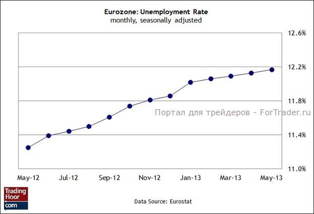 Целый ряд опубликованных в последнее время статистических отчетов о состоянии европейской экономики свидетельствует о том, что глубокая заморозка постепенно начинает оттаивать. Самым последним подтверждением этого стали данные о деловом доверии. Вчера из отчета Европейской комиссии мы узнали о том, что индикатор делового климата для еврозоны в июле снова повысился и достиг максимальной отметки с апреля 2012 года. Этому предшествовал опубликованный на прошлой неделе отчет, который продемонстрировал существенное улучшение результата композитного индекса менеджеров по закупкам для еврозоны. Однако растущие индикаторы настроений лишь отражают надежды на улучшение реальной экономики в будущем, и эти надежды должны подтвердиться официальной статистикой, а для этого требуется время. Сегодняшняя новость о безработице вряд ли удовлетворяет этому стандарту. С другой стороны, неизменный показатель безработицы как минимум поддержит разговоры о восстановлении.