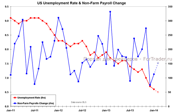 Консенсус-прогноз предусматривает прирост занятости вне сельскохозяйственного сектора в прошлом месяце на 152 000 единиц после несущественного увеличения в январе на 113 000 и совсем плачевного показателя на уровне 75 000 в декабре. Уровень безработицы предположительно понизился с 6,6% до 6,5%. Ежемесячные результаты очень неустойчивы и часто пересматриваются, а аномально холодная зимняя погода дополнительно исказила статистику.