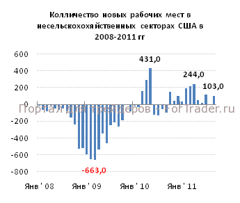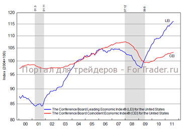 Мы уже отмечали ранее, что динамика основных инструментов на мировых финансовых рынках плохо сопоставлялась с трендами макроэкономических индикаторов США. Так фондовый индекс S&P 500 с июня 2011 года в моменте терял 20%, понизившись до отметки 1073 пункта с уровня 1346. В то время как ключевые макроэкономические показатели не отмечали состояния рецессии в крупнейшей экономике мира. К примеру, с осени 2008 года по весну 2009 рынок труда США терял в среднем 530 тысяч рабочих мест, а в 2011 он ни разу не показал отрицательного прироста. Сводный индекс лидирующих индикаторов, публикуемых Conference Board, вообще, находится в устойчивом восходящем тренде.
