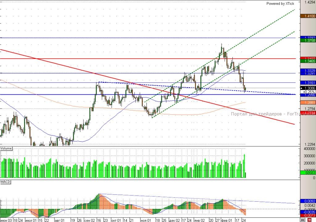 Европейская валюта еще накануне попыталась взять штурмом отметку 1,3, но пока данные попытки не увенчались успехом. Получится ли взять данный уровень в дальнейшем, во многом будет зависеть от американских политиков и прогресса в решении по вопросу секвестра бюджета. Тем временем статистика по европейским странам пока не сильно радует. Таким образом, потребительское доверие в Германии в марте осталось на уровне 5,9, а во Франции в феврале достигло отметки 86.