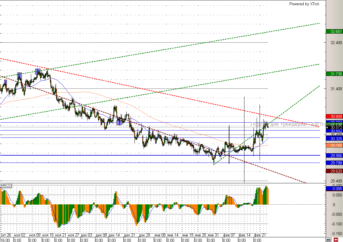 Рубль и евро сегодня практически не изменяются к американскому доллару и торгуются вблизи уровней закрытия вторника. Данная динамика обусловлена противоречивыми факторами. С одной стороны положительным фактором является речь Бена Бернанке, который в своем вчерашнем выступлении всячески защищал текущую программу выкупа активов, а также попросил Конгресс и Белый дом договориться о замене секвестра другими мерами. С другой стороны находится Италия, где после парламентских выборов ни одна из партий пока не может сформировать кабинет без поддержки оппонентов.