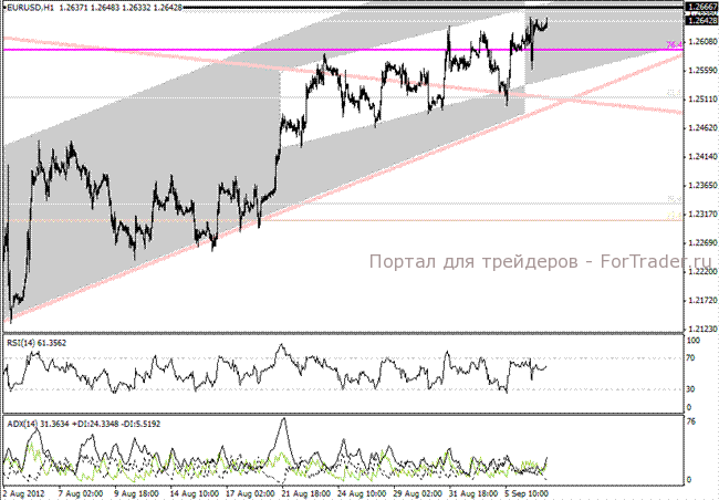 Пара евро/доллар США проводит последние дни перед тем, как пробой выше уровня коррекции Фибоначчи на 76,4% роста с июня 2010 по апрель 2011 года станет уверенным. Формально прорыв уже произошёл около 1,26, но фактически для него надо завершить неделю выше этой области. Несмотря на позитивные сигналы трендового индикатора среднего направленного движения (ADX) с периодом 14, окончательному прорыву мешает лёгкая перекупленность по осциллятору относительной силы (RSI) с шагом 1 час и 4 часа. Приказы на покупку возможны около вершин месяца 1,264 с целью на максимуме 29 июня 1,269 и чуть выше максимума 20 июня, около 1,2705, с целью чуть ниже максимума 18 июня, около 1,2745. Для трейдеров, наиболее склонных к риску, возможны цели чуть ниже 1,28, около уровня коррекции на 50% падения мая-июля. Приказы на продажу в виде селл-стопов вероятны около 1,258 с первоначальной целью 1,255 и конечной целью 1,253, чуть выше уровня коррекции на 61,8% падения мая-июля.