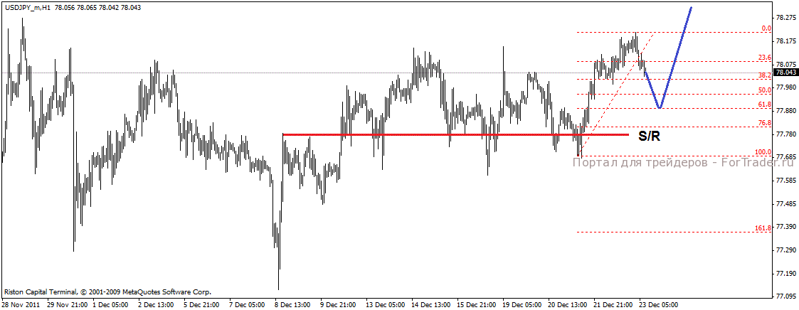 После отскока от уровня поддержки, пара начала стремительно расти, не делая никаких значительных коррекционных снижений. Очевидно это снижение произойдет в ближайшее время. Ожидается коррекционное снижение пары к уровню 61.8% фибо, откуда рост пары вновь возобновится.