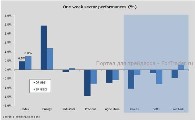 Новость из Вашингтона о том, что временное соглашение поможет избежать технического дефолта не вызвала реакции на сырьевых рынках, которые отказались даже рассматривать вероятность провала. На этом основании можно сказать, что сырьевые трейдеры уже ожидали разрешения проблемы, и это привело к дополнительному давлению на драгоценные металлы. Медь спустилась к нижней границе своего текущего диапазона на фоне снижения долгосрочных прогнозов по ценам, в то время как энергетический сектор показал наилучшие результаты вторую неделю подряд под влиянием покупок природного газа и бензина.