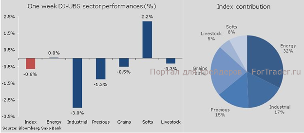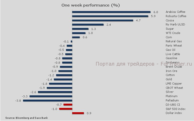 В сельскохозяйственном секторе картина была смешанная: на рынках основных зерновых культур, например пшеницы, продолжились продажи, зато повышение цен на какао и кофе обеспечило высокий результат для сектора выращиваемых товаров по итогам недели.