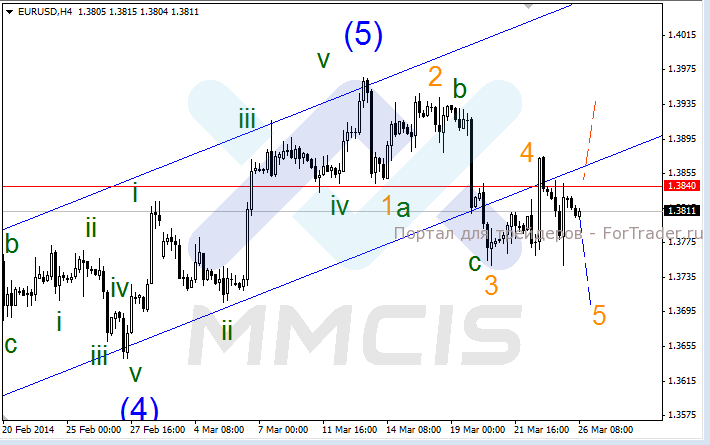 В качестве основного сценария рассматривается снижение в волне «5» к отметке 1.3700. В качестве альтернативного сценария рассматривается пробой уровня сопротивления 1.3840, что может привести к росту единой валюты в район отметки 1.3940.